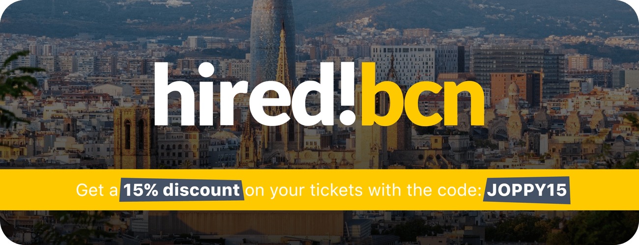 Joppy's discounts🎯 Don't forget that this month is the great event of Hired!bcn and together with Joppy you will have an incredible discount to participate using our code: JOPPY15